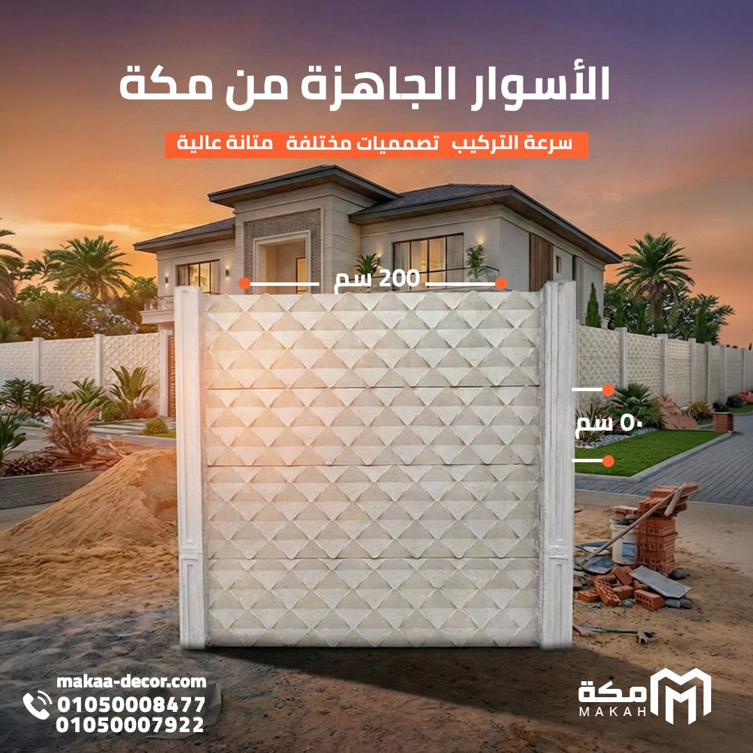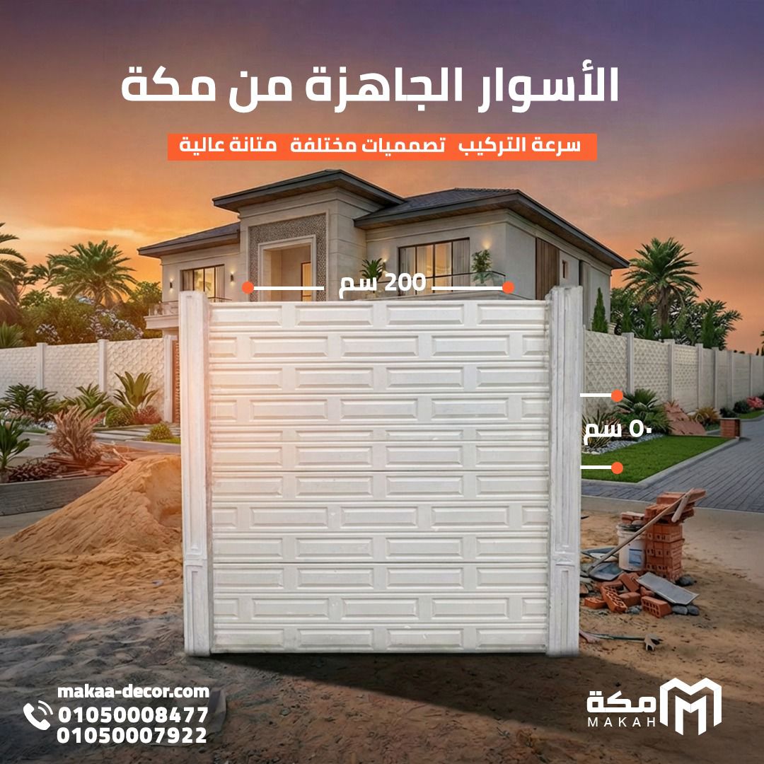 تعد الأسوار الخرسانية الجاهزة (Precast Concrete Fences) الثورة الحديثة في عالم المقاولات والإنشاءات، حيث استطاعت أن تحل محل الأسوار التقليدية المبنية من البلوك والأسمنت بفضل سرعتها الفائقة وجودتها العالية. وتبرز شركة مكة كواحدة من الجهات الرائدة التي تقدم هذه الخدمة وفق معايير هندسية دقيقة.